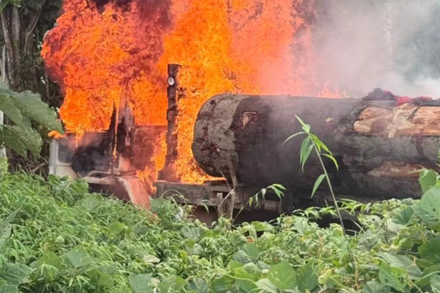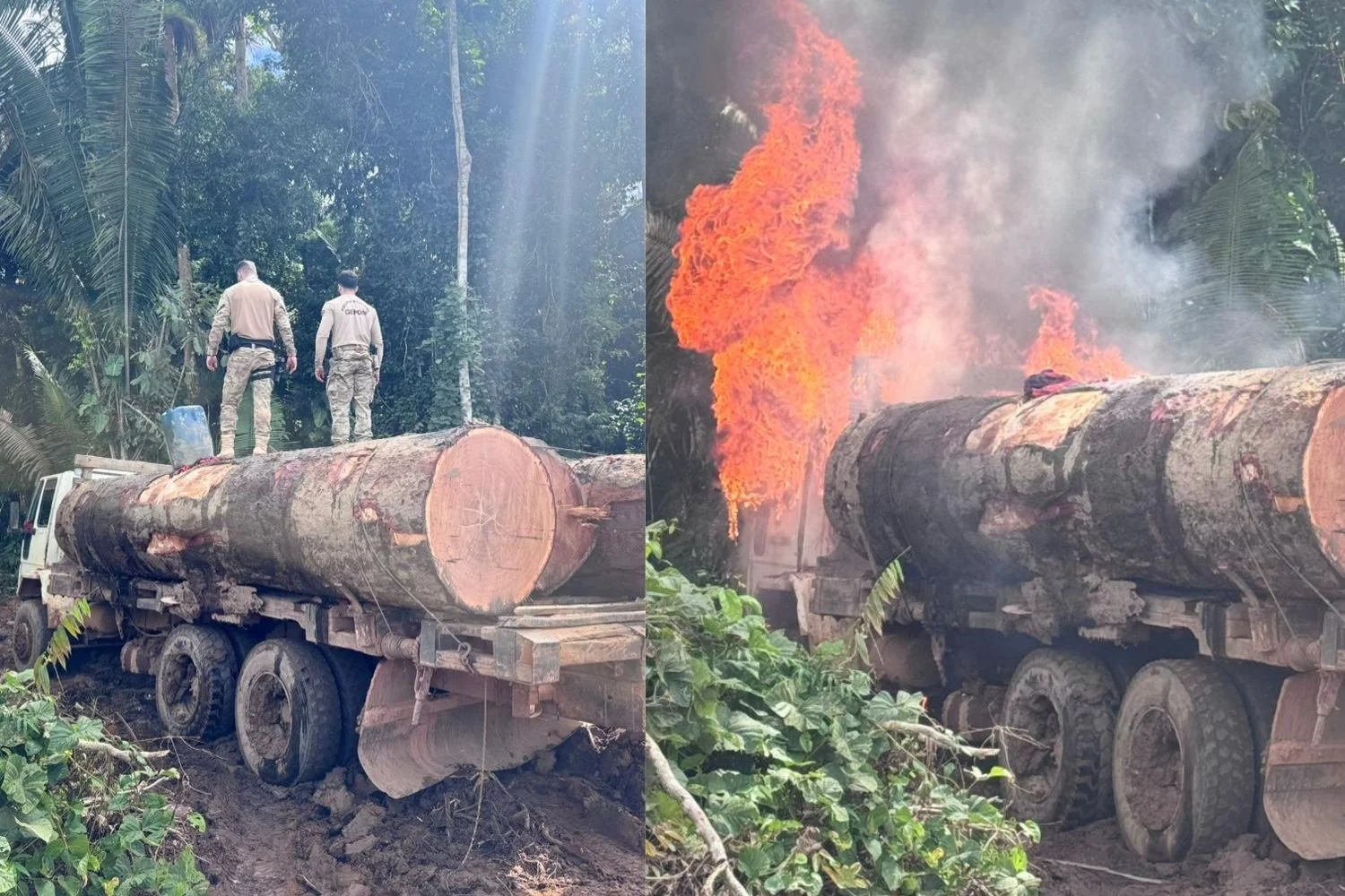 Durante as diligências realizadas no interior da Terra Indígena Igarapé Ribeirão, na região de Guajará-Mirim, foram encontrados três caminhões carregados com madeira de origem ilícita.