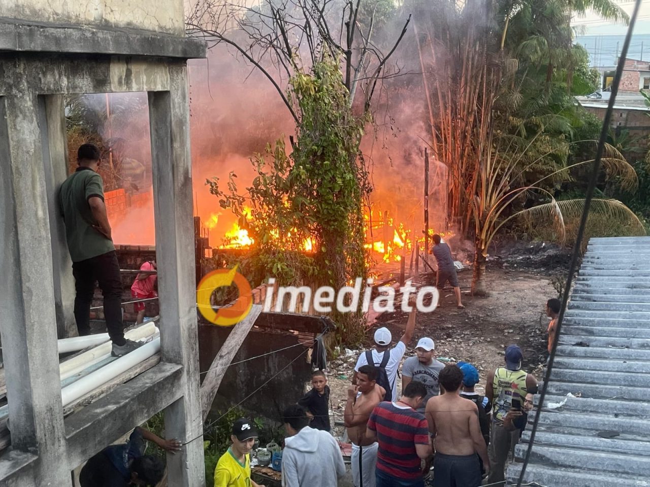 Uma vizinha relatou que o incêndio teve início devido a um curto-circuito, resultando em perda total da residência. A família afetada, composta por uma mãe, um adulto e duas crianças, conseguiu salvar apenas a geladeira.