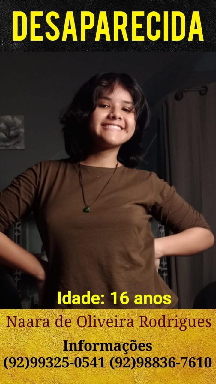 MANAUS-AM | Familiares solicitam ajuda para encontram uma jovem identificada como Naara de Oliveira Rodrigues, de 16 anos, a mesma saiu na ultima quinta-feira (10) e não voltou para casa.