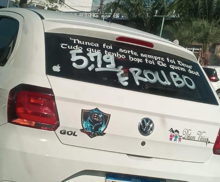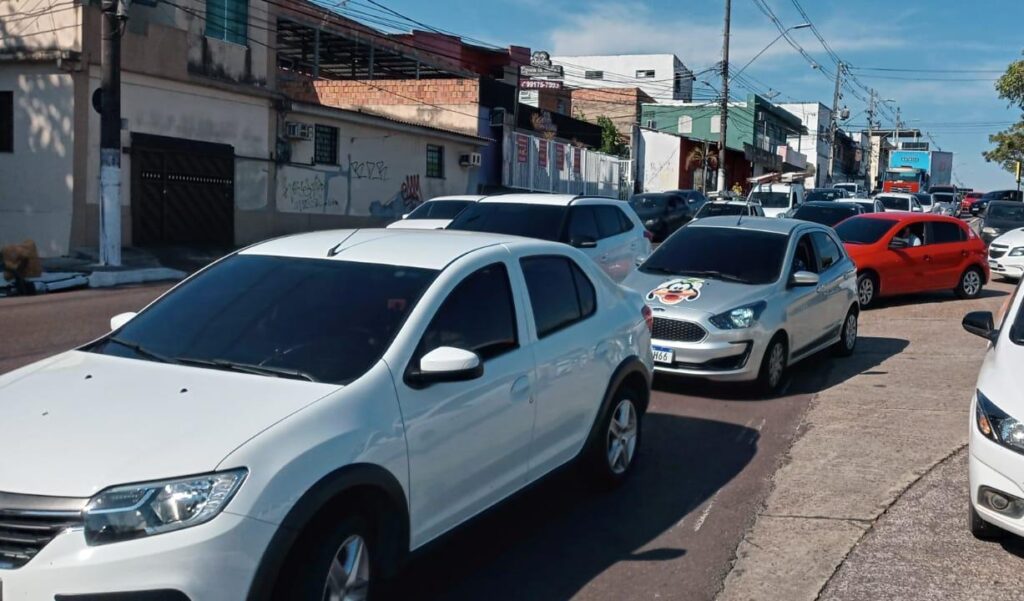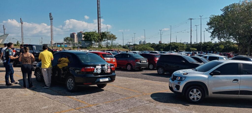 MANAUS-AM| Nesta quinta-feira (29), às 15h, centenas de motoristas de aplicativos de transporte de Manaus deram início ao uma manifestação contra o aumento dos combustíveis. Na maioria dos carros a frase “5,79 é roubo”, estampada no parabrisas traseiro, uma alusão ao preço da gasolina comum praticado nos postos de combustíveis.