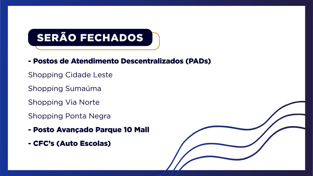 Já em relação às provas teóricas, haverá um remanejamento para a sede do Detran-AM dos alunos que fariam o exame nos Postos de Atendimento Descentralizados (PADs) localizados nos shoppings Sumaúma, Via Norte, Cidade Leste e Ponta Negra, além do Posto Avançado do Parque 10 Mall. Eles serão informados da nova data e horário das provas.