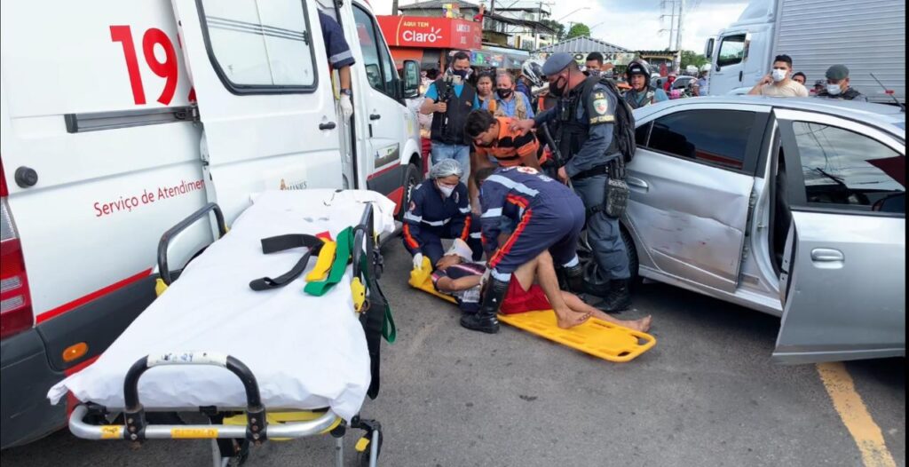 MANAUS-AM| Durante uma perseguição policial na Zona Leste de Manaus na tarde desta segunda-feira (25), a guarnição da 30º Companhia Interativa Comunitária (Cicom) colidiu com um veículo, modelo prisma de cor prata, que estava sendo utilizado por três assaltantes para cometer roubos na capital. Os suspeitos tentaram fugir e atiraram contra a polícia, dois foram levados para uma unidade hospitalar.
