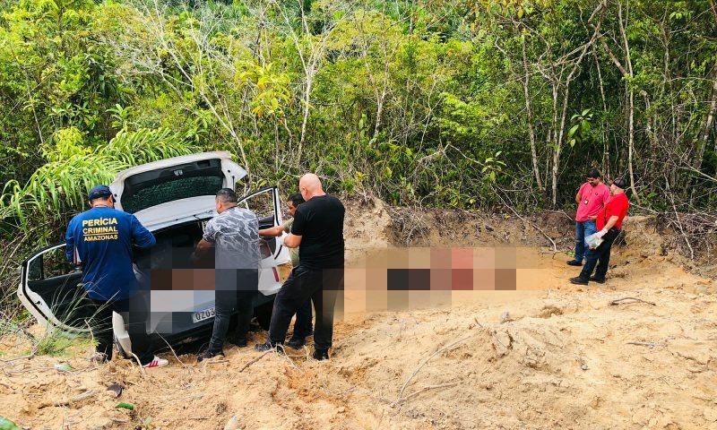 Dois homens e duas mulheres foram encontrados mortos a tiros na manhã do dia 21 de dezembro de 2022, dentro de um carro abandonado em um terreno no ramal Água Branca 1, na AM 010.