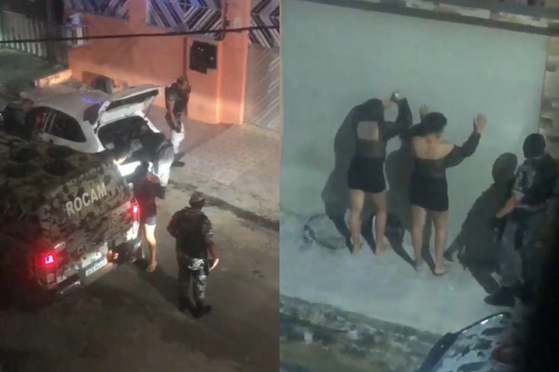 No veículo, além do casal, Valéria e Alexandre, estavam os irmãos Diego Maximo Gemaque, 33 anos, e Lilian Daiane Maximo Gemaque, 31 anos. No registro, é possível ver o Valéria e Lilian sendo colocadas contra a parede e revistadas pelos policiais.